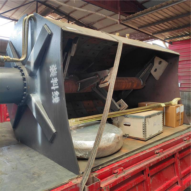 4、下开口工装载机搅拌铲斗利用成熟的装载机生产技术和强制式混凝土搅拌机生产技术,把强制式混凝土搅拌机经过改装安装在装载机的铲斗位置,利用装载机的液压传动装置驱动搅拌机工作,既可发挥装载机方便的移动性能和自行上料、卸料的优势,又可以利用强制式混凝土搅拌机的拌合功能,一台机械即可实现上料、拌合、转场、卸料的多重功能。克服混凝土工程施工过程中使用机械多、人员多、占用场地大、对电源依赖性大等缺点,实现一机多用,灵活活方便,有效降低施工成本和能源消耗的目的,节能减排。